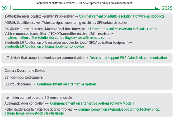 ③ Combined with One-stop solution for electronic circuit design, structural design and software development. Accomplish the production from a conceptual idea to a finished product by our strong technological foundation and the competence of our creative engineers and whole group of staff.